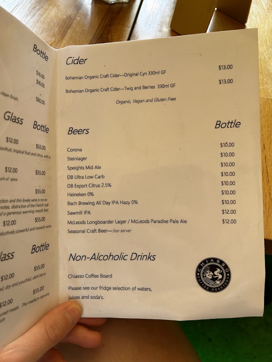 Waipu Central specializes in an array of local and seasonal dishes, with a special emphasis on fresh, quality ingredients. As you step inside, the inviting aroma of freshly brewed coffee fills the air, beckoning you to explore their impressive drink menu. Treat yourself to their rich Chiasso Coffee Board for a wake-me-up or unwind with a glass of their splendid Red Wine Selection, which features the delightful Kahurangi Estate Reserve Pinot Noir or the robust Thomsons 'Old Pumphouse' Shiraz, both available for just NZ$12.00.